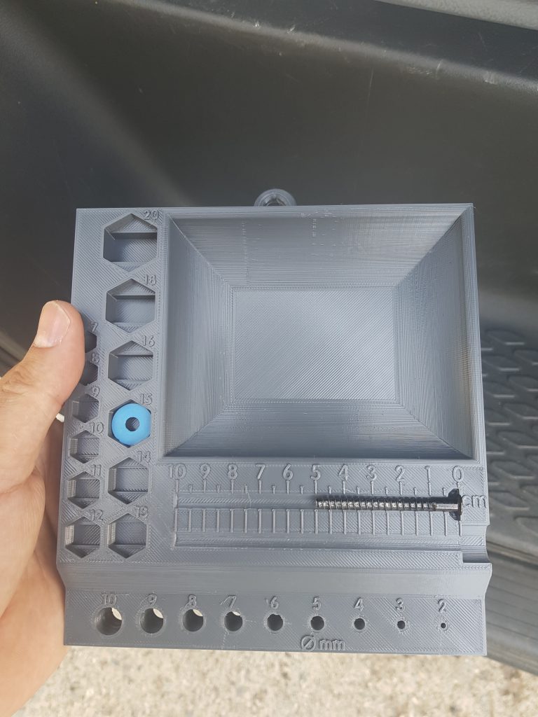 Du coup j’en ai profité pour utiliser mon outils imprimé 3D, l’outil de mesure visserie, et ainsi faire un listing complet de la visserie à changer.